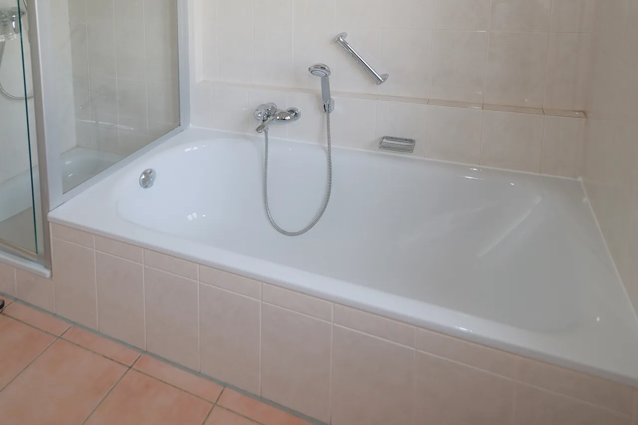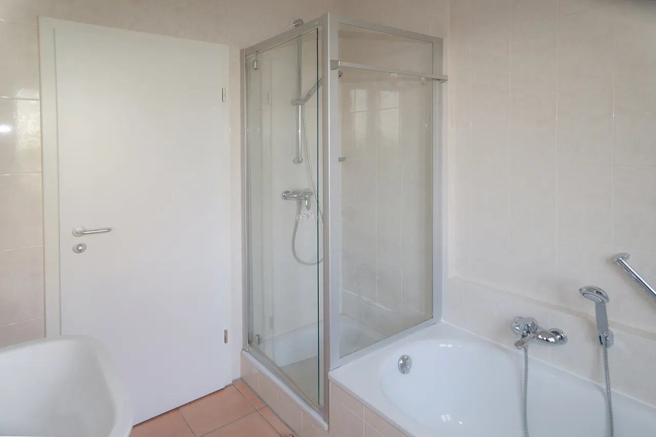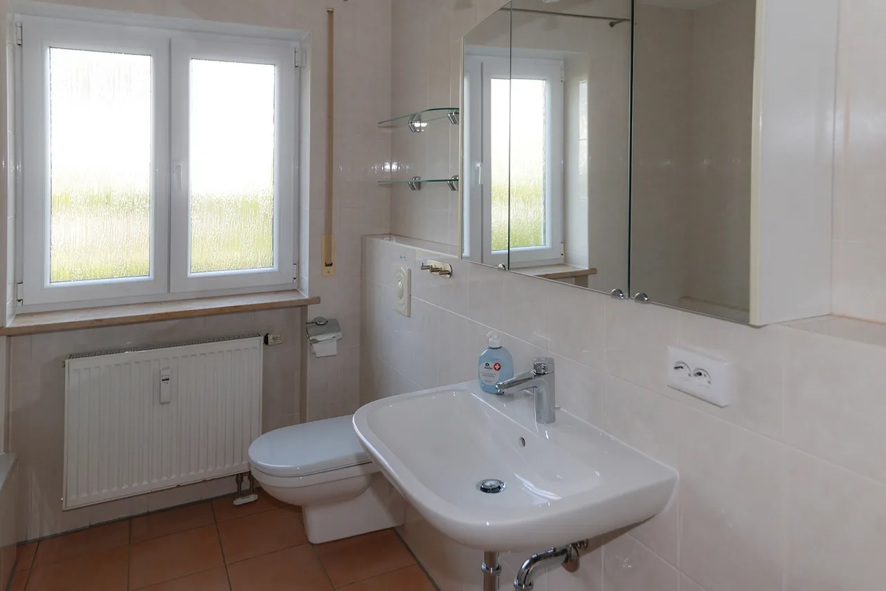 - Bad mit Wanne, Dusche, WC, Waschtisch und Fenster