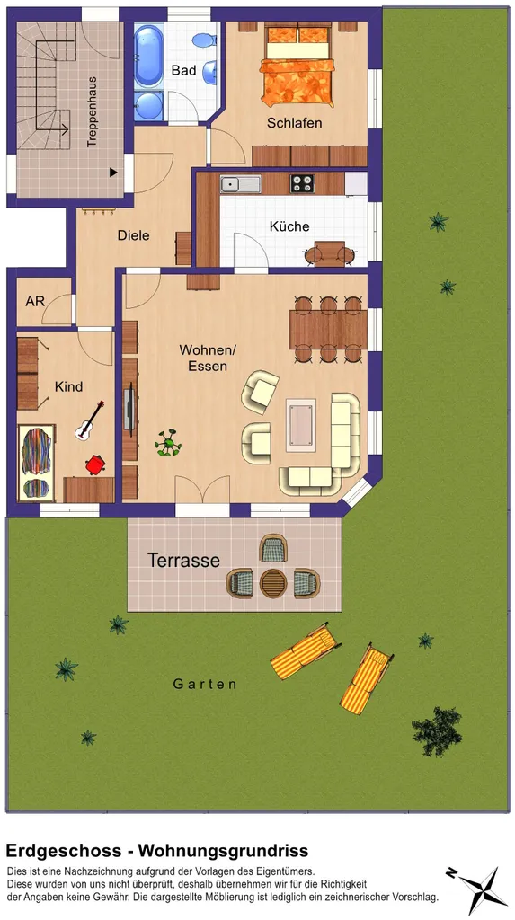 In der angegebenen Wohnfläche ist die Terrasse mit 50 % ihrer Fläche berücksichtigt.