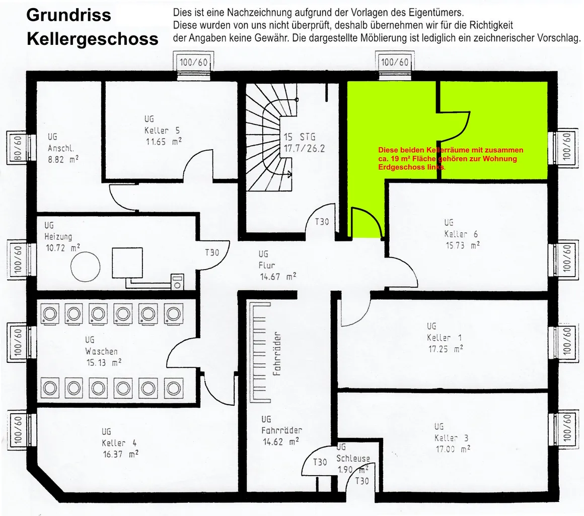 - Zwei Kellerräume mit einer Gesamtfläche von ca. 19 m²