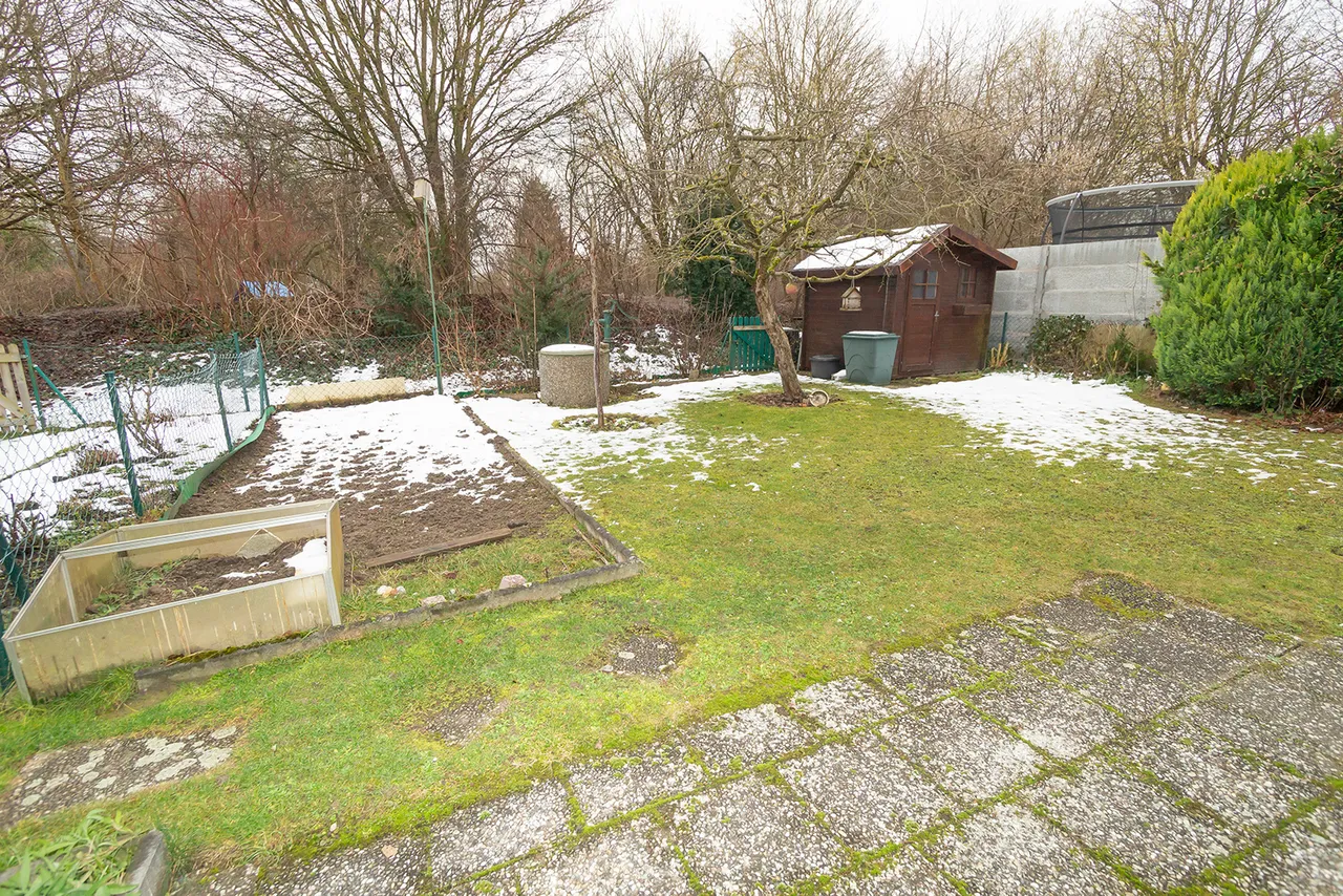 • Großer Garten (ca. 150 m²) mit Holzgartenhäuschen zur Lagerung von Gartengeräten etc.