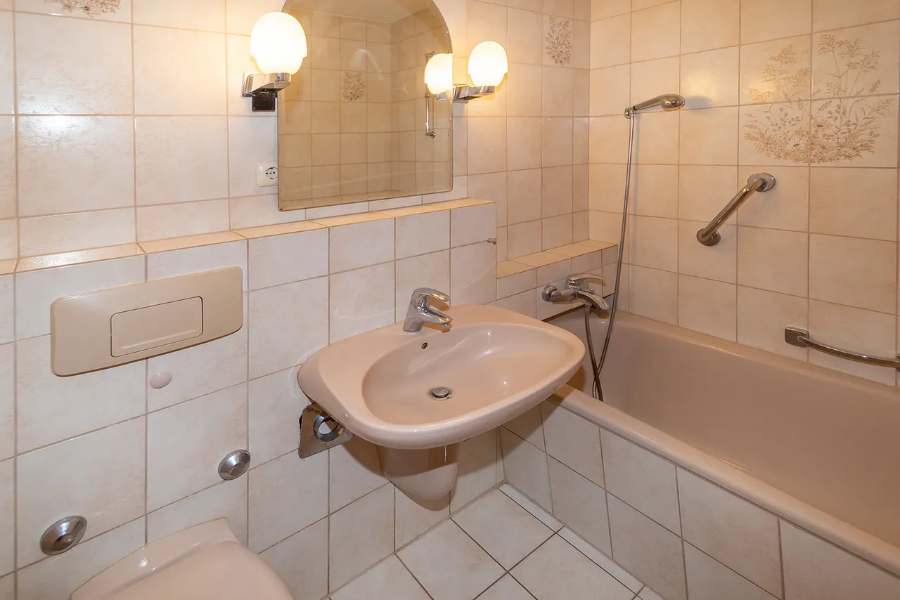 • Bad mit Wanne, WC und Waschbecken (kein Fenster)