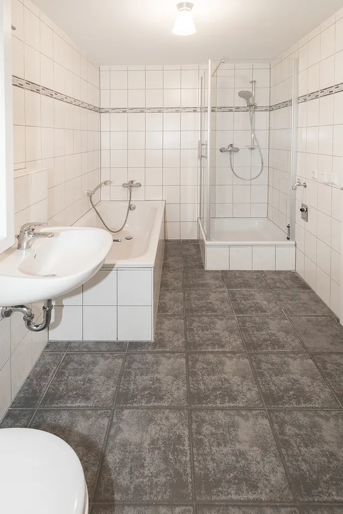 - Bad mit Wanne, Dusche, WC, Waschtisch u. Waschmaschinenanschluss