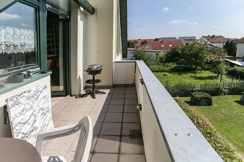 Die Wohnung liegt im Dachgeschoss eines von der Straße abgewandten Hinterhauses im östlichen Ortskernbereich des Marktes Manching. Sie wohnen also vor den Toren Ingolstadts. Die dazugehörige Dachterrasse ist von außen nicht einsehbar und Sie können uneingeschränkt Ihre Privatsphäre genießen.