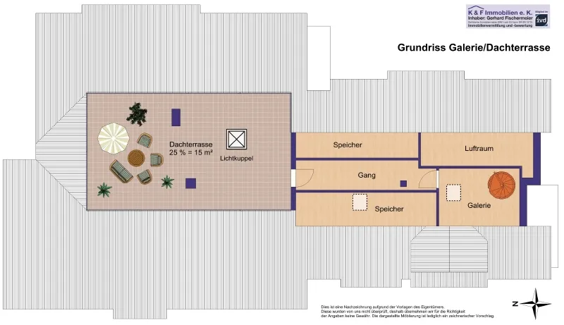 Dachterrasse (25% der Gesamtfläche): ca. 15 m²