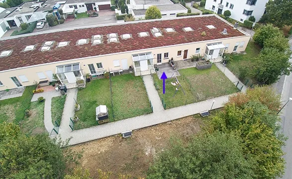 Diese 2-Zimmer-Erdgeschosswohnung befindet sich in einer Flachdachwohnanlage, bestehend aus einem Untergeschoss und einem Erdgeschoss.
