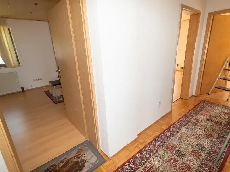 Schlafzimmer, 2 Kinderzimmer, Bad, WC, Flur, Balkon, Zugang zum Spitzboden (Lagerfläche) mittels Zugtreppe