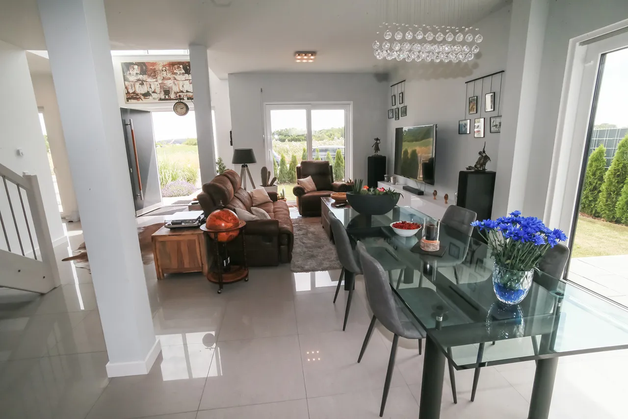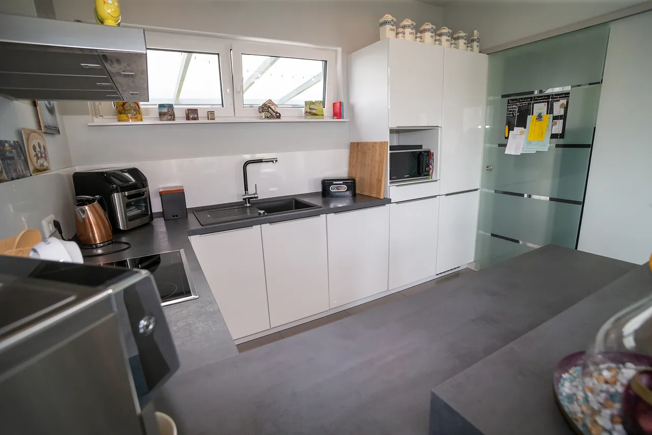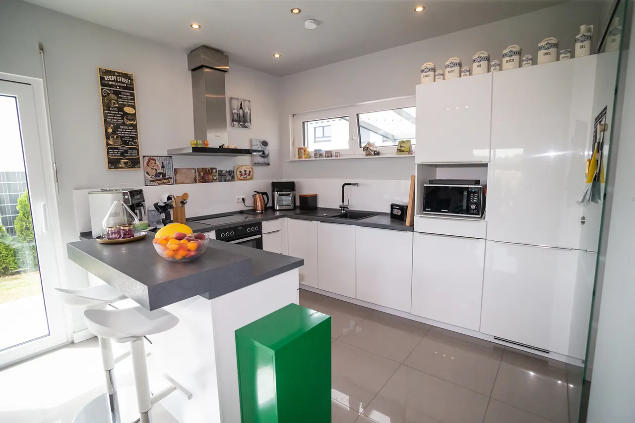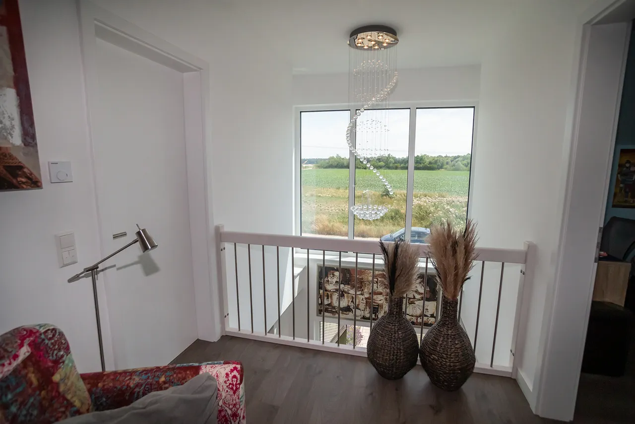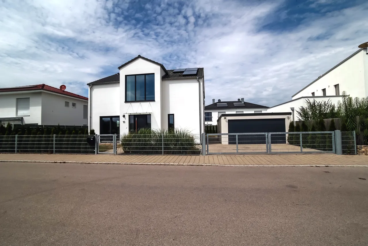 Sie finden hier ein energieeffizientes Einfamilienhaus vor, welches mit moderner Architektur inkl. hohen Fassaden und viel Licht besticht. Die Bauweise besteht aus einer massiven Holzverbundkonstruktion der Firma "MASSAHAUS". Die Außenwände sind als "Klima-Plus-Wand" seitens des Herstellers bezeichnet.