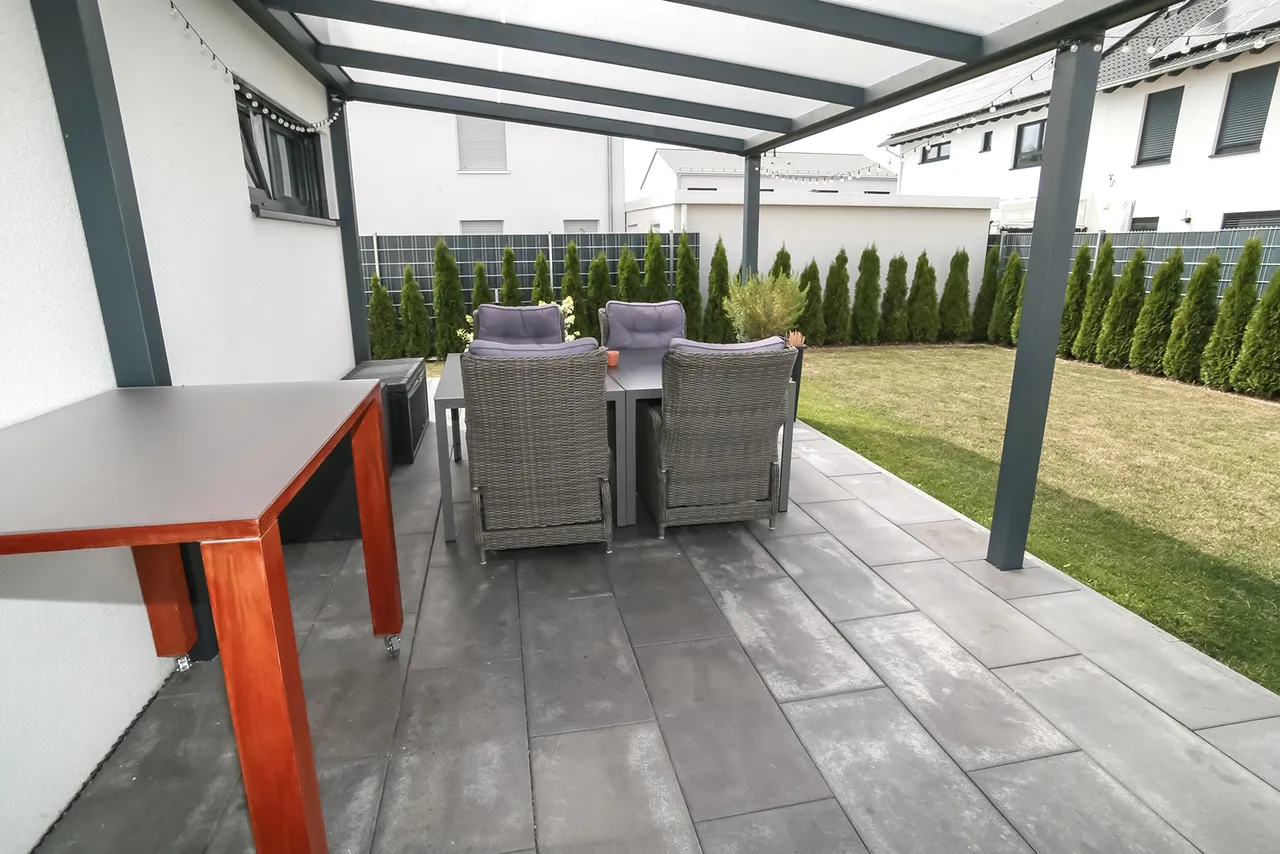 Bei der angegebenen Wohnfläche von rd. 154 m² ist die Terrasse GAR NICHT BERÜCKSICHTIGT und bezieht sich nur auf die Innenräume des Hauses.