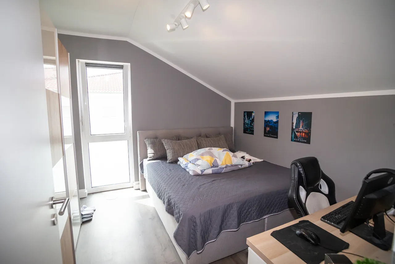 Die Lage des Hauses ist auch ideal für den Alltag. In der näheren Umgebung finden Sie Annehmlichkeiten, wie z. B. ein EDEKA-Center. Auch Schule und Kindergarten sind im benachbarten Zuchering gut erreichbar.