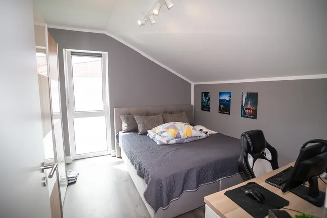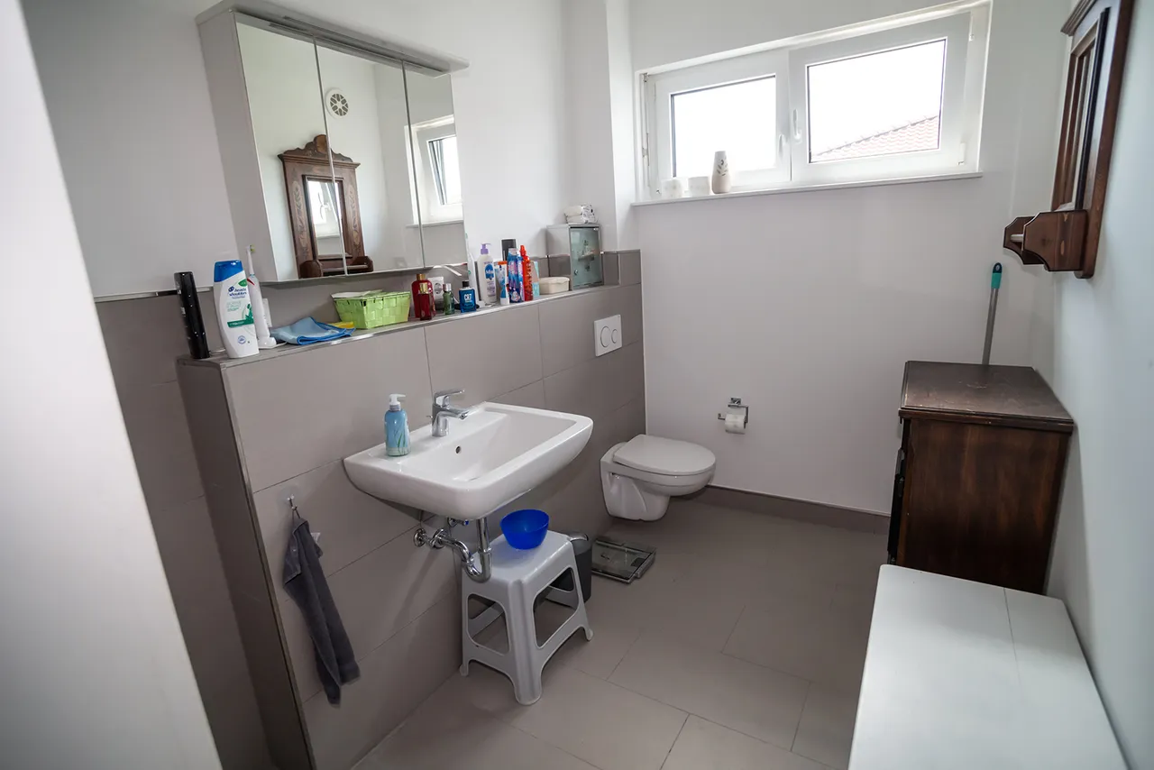 Das Haus ist nicht unterkellert und bietet im Erdgeschoss sowie im Dachgeschoss aufgrund der Kniestockerhöhung auf 180 cm mit 25° Dachneigung viel Platz. Die Innenausstattung ist sehr gepflegt und zeitgemäß.