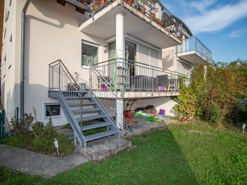 Hier finden Sie eine 3-Zimmer-Erdgeschoss-Wohnung in einem Haus mit 5 Wohneinheiten vor. Zur Wohnung gehört eine Hochterrasse mit Zugang zum eigenen Gartenanteil, eine kleine Abstellkammer, ein Kellerraum, ein gemeinschaftlicher Waschraum mit Einzelanschluss für Waschmaschine und Trockner. Eine Garage, ein Kfz-Stellplatz im Freien und ein Abstellabteil im Holzschuppen können als Gemeinschaftseigentum mitbenutzt werden.