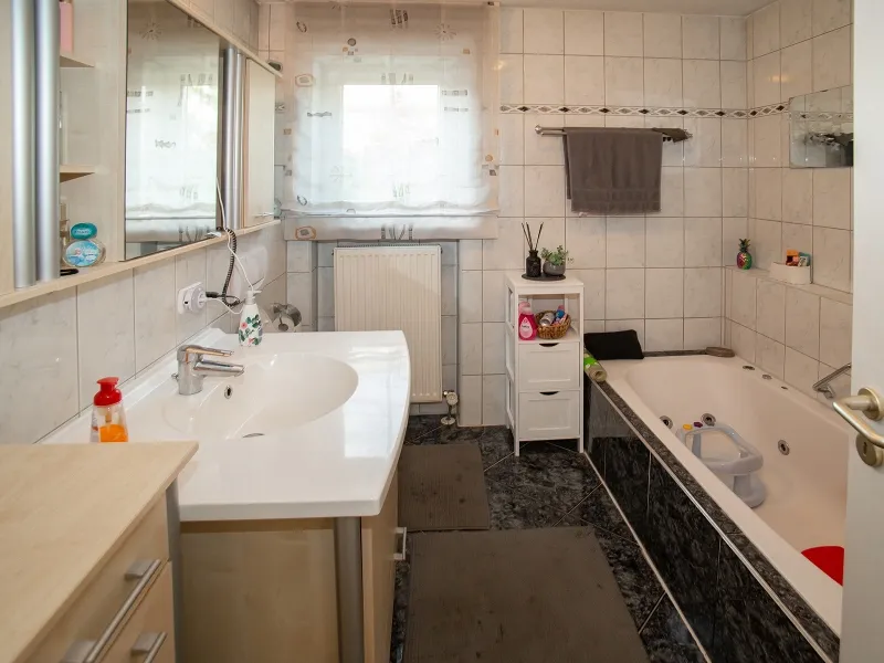 - Bad/WC mit Wanne (Whirlpool-Düsen) u. Dusche