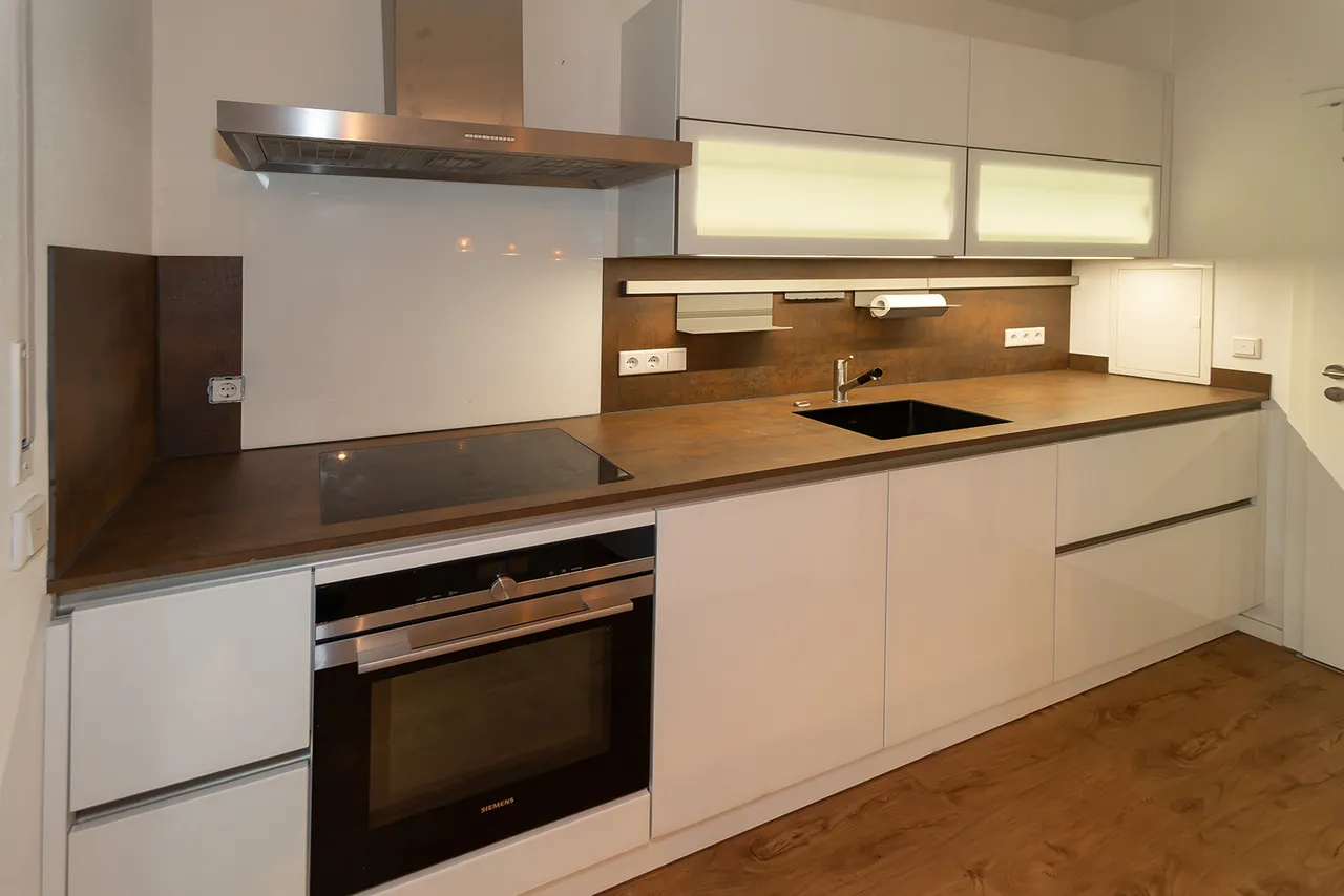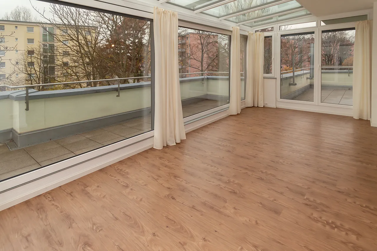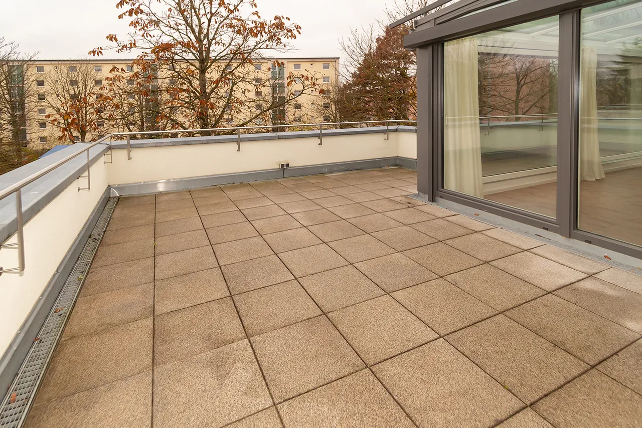 In der angegebenen Wohnfläche sind die beiden Wintergärten mit ihrer Gesamtfläche, die Flächen der Dachterrassen aber lediglich mit 25 % der Gesamtfläche berücksichtigt. Die angegebene Nutzfläche bezieht sich auf das Kellerabteil sowie das Gartenhäuschen auf der Dachterrasse und den Vorplatz zum Wohnungseingang.