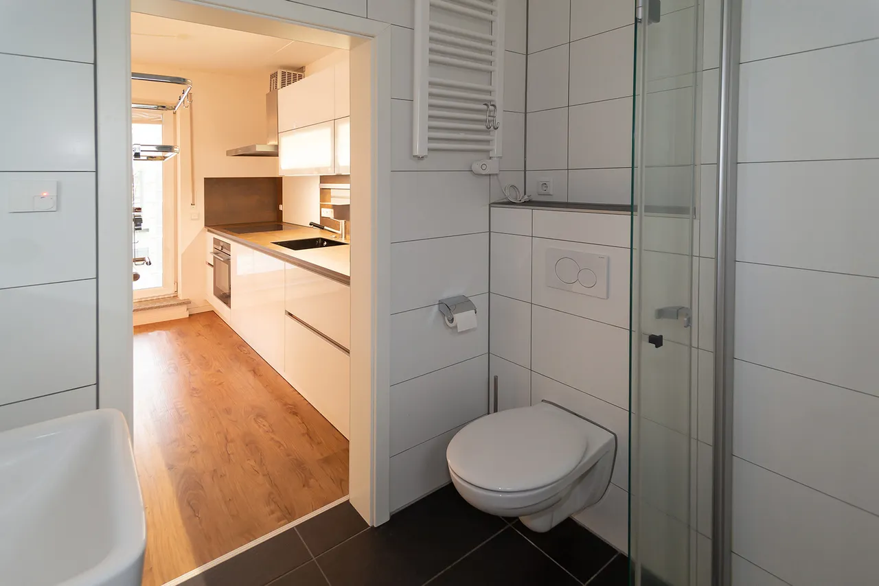 Dusche/WC (keine Badewanne) mit Anschlussmöglichkeit für Waschmaschine und Trockner