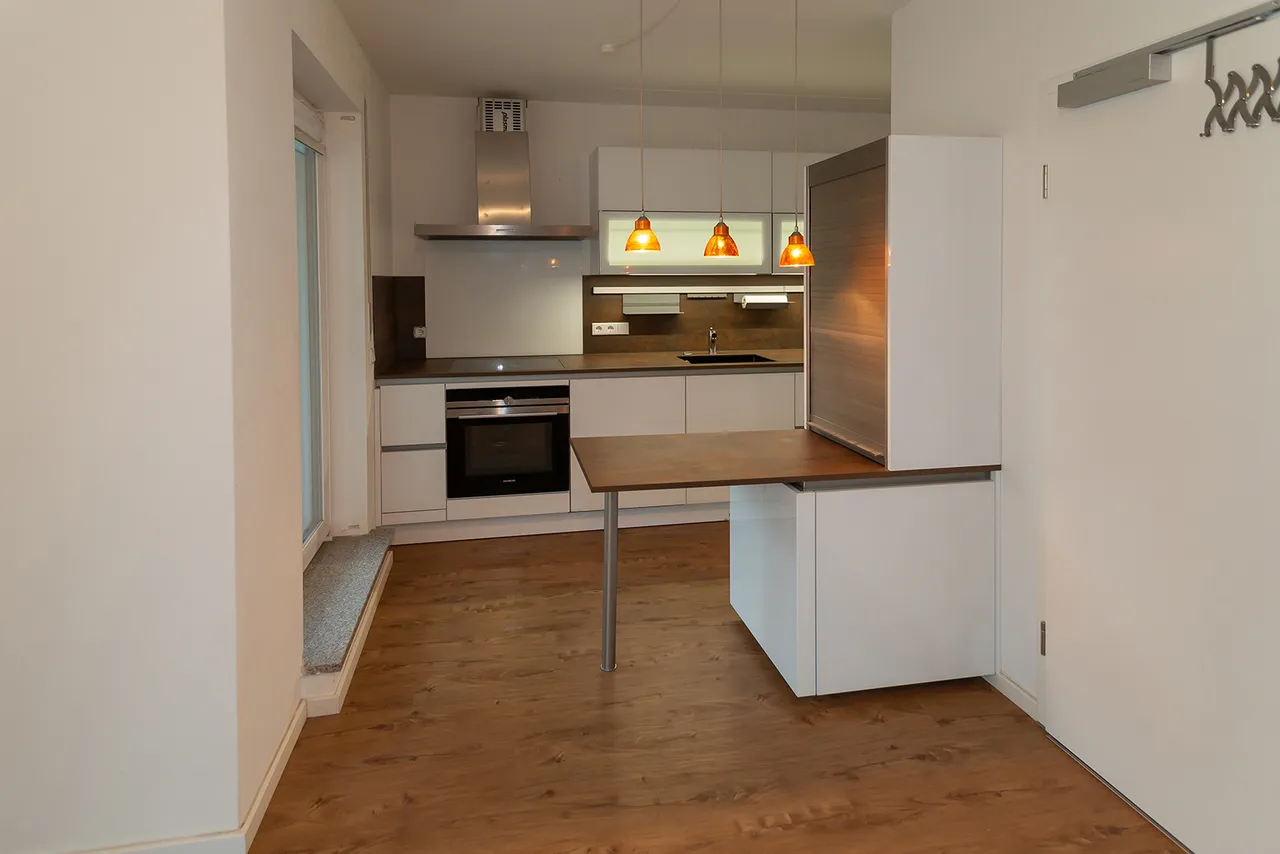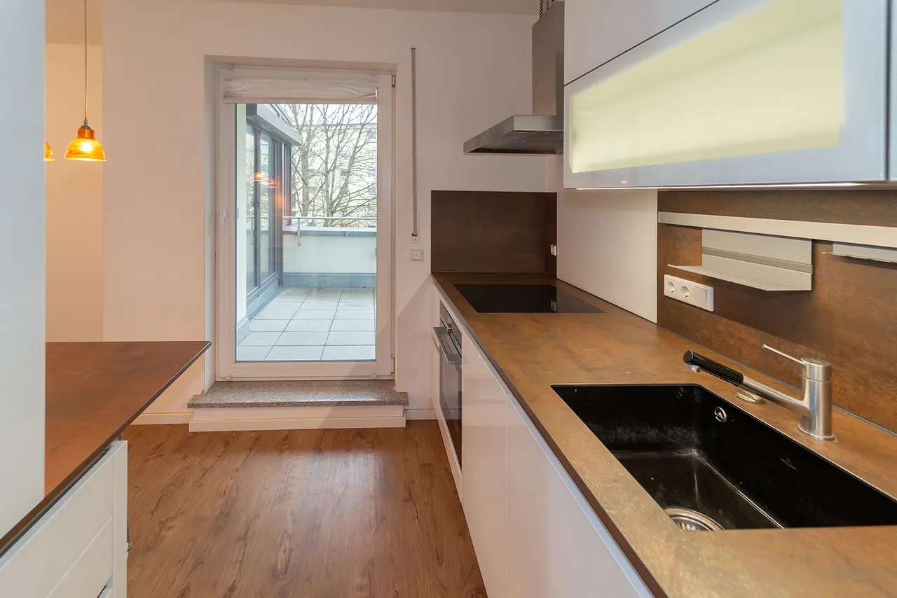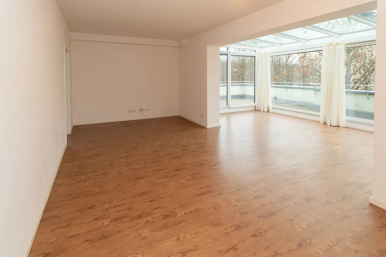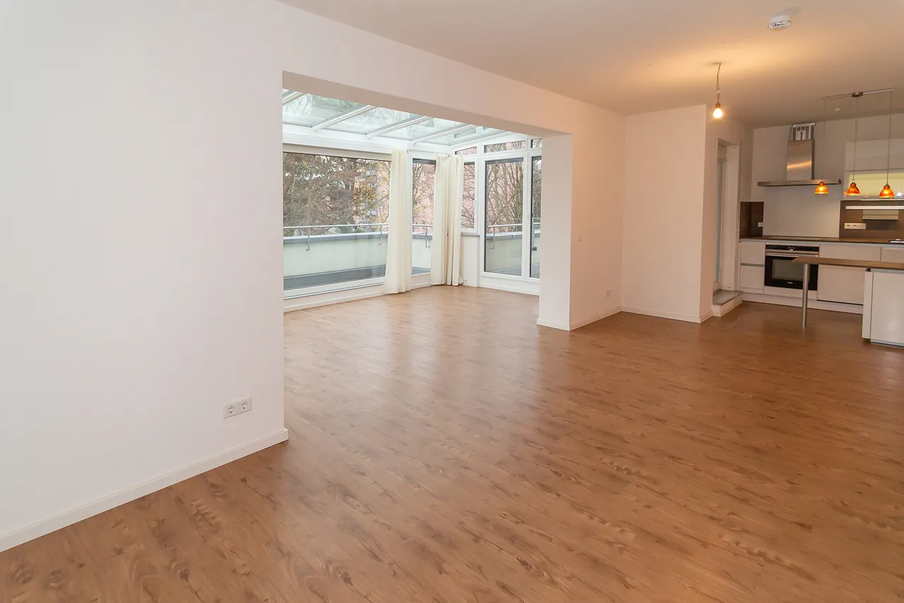 Ein offener Wohn-, Ess- und Küchenbereich mit Zugang zu Wintergarten und Dachterrassen ermöglicht Ihnen ein großzügiges Wohngefühl. Ebenso kommen Sie vom Schlafbereich in einen angrenzenden Wintergarten mit Dachterrasse. Im Dusch-/WC-Bereich ist noch zusätzlich ein Anschluss für Waschmaschine und Trockner vorhanden. Ein eigenes Kellerabteil sowie ein Tiefgaragenstellplatz runden das Angebot ab. Die Wohnung ist bezugsfrei.