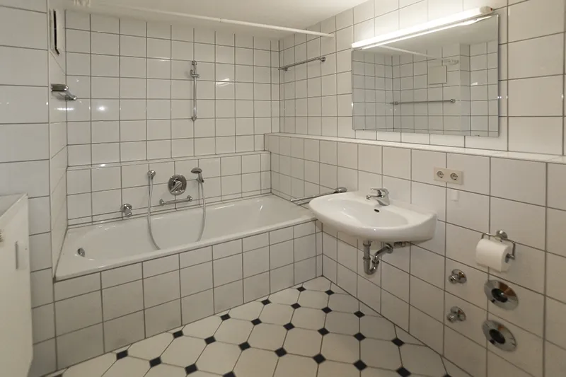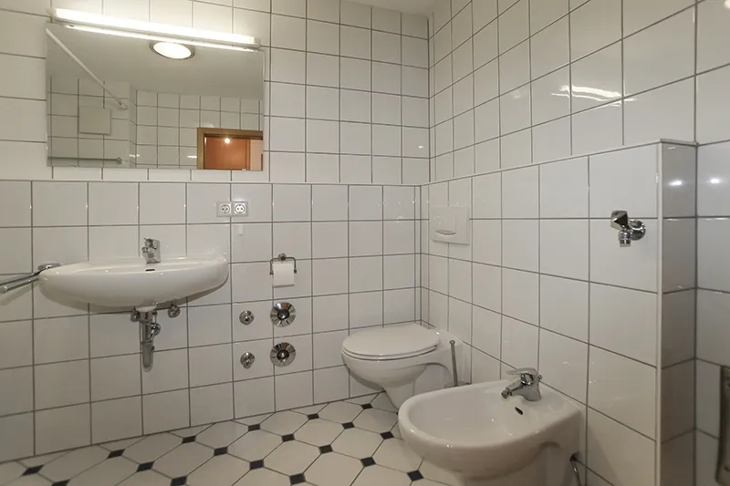 - Bad mit Badewanne, Waschbecken, WC, Bidet, Waschmaschinenanschluss, Lüftung (kein Fenster)