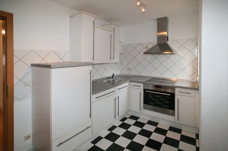 - Einbauküche mit E-Herd und Kühlschrank mit Gefrierfach