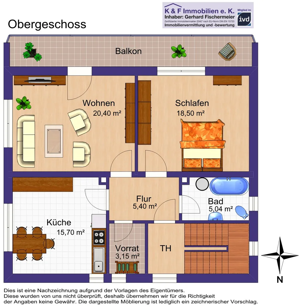 Alle Angaben stammen vom Eigentümer und/oder von Dritten. Eine Überprüfung dieser Angaben wurde von der K & F Immobilien e. K. nicht vorgenommen. Für deren Richtigkeit übernimmt die K & F Immobilien e. K. keine Gewährleistung/Haftung und schließt sie aus. Der Käufer ist verpflichtet, sich selbst von der Richtigkeit der Angaben vor dem Kauf zu überzeugen. Das gilt auch für alle Beschaffenheitsangaben (wie z. B. Baujahr, Flächenangaben, Grundrisse, Zustand usw.). Irrtum und Zwischenverkauf vorbehalten. Dieses Exposé ist eine Vorinformation. Als Rechtsgrundlage gilt allein der Kaufvertrag.